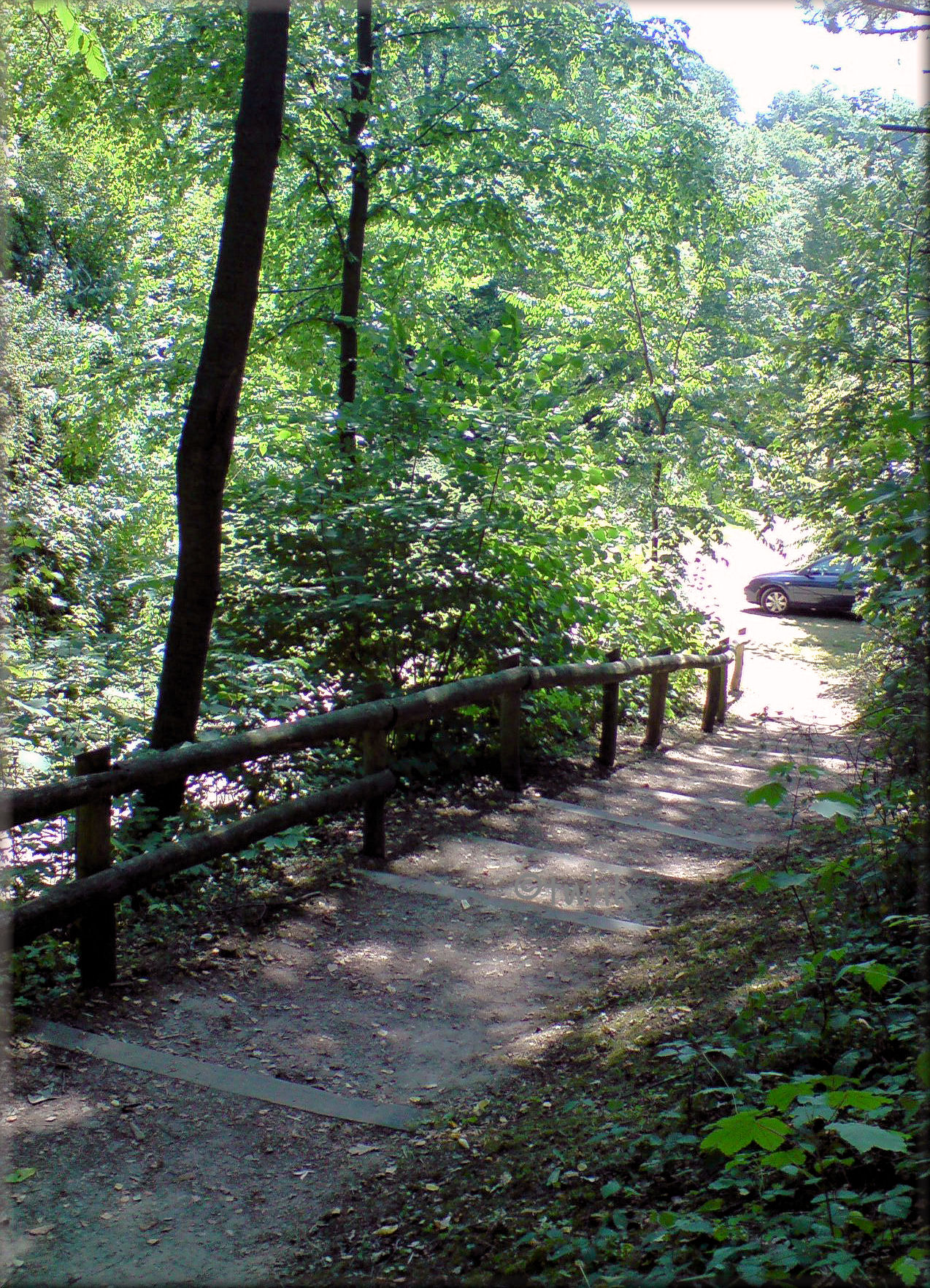 und zu einem hoch gelegenen, zum Teil schattigen Parkplatz, von dem aus man nach ca. 240 Metern